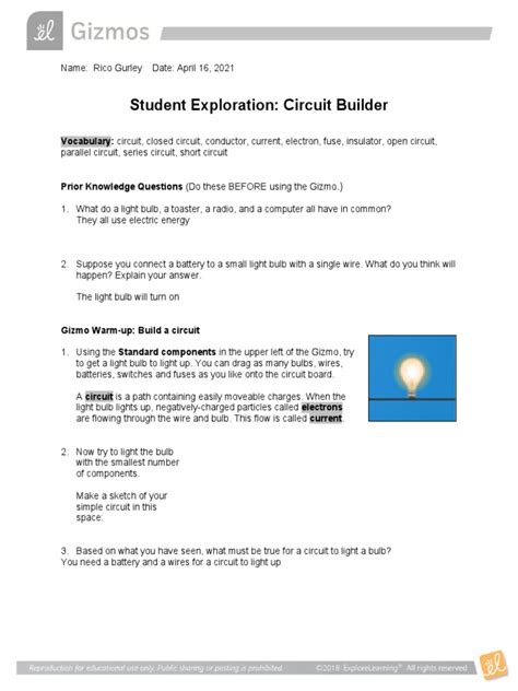 Download online Student Exploration Circuit Builder Explorelearning 54851 PDF Free Reading
